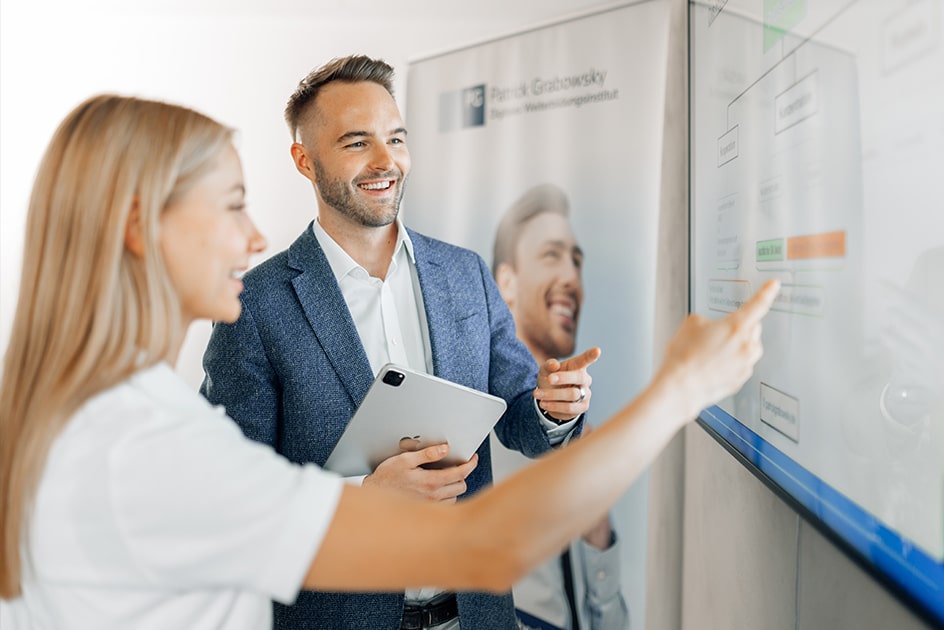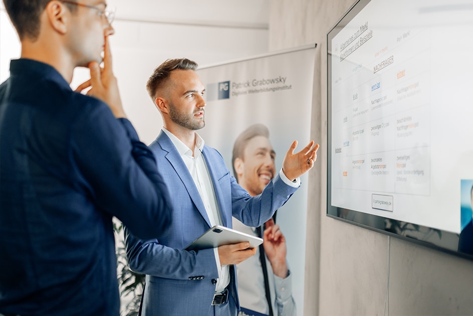 Im Online-Meeting mit einem unserer Trainer klären wir alle organisatorischen Themen, schalten dir Zugänge frei und entwickeln deinen individuellen Lernplan, abgestimmt auf deine Alltagssituation. Zudem unterstützen wir dich bei der Beantragung deiner Fördergelder.
